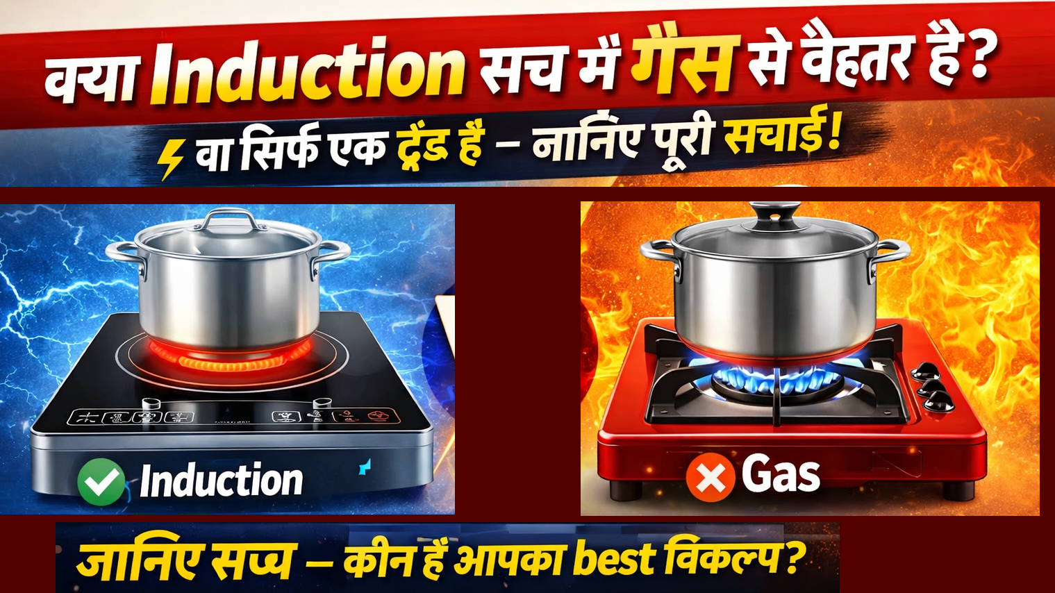 Introduction (परिचय) आज के समय में हर घर में एक बड़ा सवाल उठ रहा है —“Induction Cooktop बेहतर है या Gas Stove?” रसोई में technology तेजी से बदल रही है। पहले जहां हर घर में LPG गैस का इस्तेमाल होता था, वहीं अब induction cooktop एक modern और convenient option बन चुका है। खासकर शहरों और छोटे घरों में लोग तेजी से induction की तरफ shift कर रहे हैं। लेकिन क्या induction सच में गैस से बेहतर है?या ये सिर्फ एक trending gadget है? 👉 इस ब्लॉग में हम आपको बताएंगे: Induction vs Gas की पूरी तुलना फायदे और नुकसान बिजली vs गैस का खर्च और आखिर में कौन सा आपके लिए best रहेगा Induction Cooktop क्या होता है? Induction cooktop एक electric device होता है जो electromagnetic technology के जरिए बर्तन को सीधे गर्म करता है। 👉 इसमें heat flame से नहीं, बल्कि magnetic field से generate होती है। अनुमान के अनुसार, भारत में पिछले कुछ सालों में induction cooktops की demand में लगभग 25–30% तक की growth देखी गई है, खासकर urban areas में। Gas Stove कैसे काम करता है? Gas stove LPG (Liquefied Petroleum Gas) का उपयोग करता है। इसमें: flame निकलती है बर्तन को नीचे से heat मिलती है और खाना पकता है यह एक traditional और widely used method है। Induction vs Gas: Detailed Comparison Speed (कौन जल्दी खाना बनाता है?) 👉 Induction: बहुत fast heating पानी 2–3 मिनट में उबल जाता है 👉 Gas: थोड़ा slow flame control manual होता है 📌 Winner: Induction Cost (खर्च कौन कम करता है?) 👉 Gas: LPG cylinder महंगा होता जा रहा है refill cost लगातार बढ़ रही है Induction: बिजली पर चलता है 1500–2000W power consumption Average comparison: 1 घंटे cooking → Induction cost कम हो सकती है (depends on electricity rate) 📌 Winner: Depends (usage पर निर्भर) Safety (कौन ज्यादा safe है?) Induction: No open flame Overheat protection auto shut-off Gas: leakage का खतरा fire risk Winner: Induction (ज्यादा safe) Maintenance (साफ-सफाई कौन आसान?) Induction: flat surface साफ करना आसान Gas: burner cleaning oil जमा होता है Winner: Induction Cooking Experience (खाना बनाना कितना आसान?) Gas: हर बर्तन इस्तेमाल कर सकते हैं flame control flexible Induction: सिर्फ induction compatible utensils cooking learning curve Winner: Gas (flexibility ज्यादा) Power Dependence (बिजली पर निर्भरता) Induction: बिजली गई = cooking बंद Gas: बिजली की जरूरत नहीं Winner: Gas Heat Efficiency (कौन ज्यादा efficient?) Induction: 85–90% heat efficiency👉 Gas: 40–50% heat loss Winner: Induction Real-Life Usage Analysis Indian Homes में कौन बेहतर? SituationBest Optionछोटे घर / PG✔️ Inductionगांव / बिजली issue✔️ Gasdaily heavy cooking✔️ Gassafety priority✔️ Inductionbudget controlDepends Induction के Hidden Disadvantages ❌ हर बर्तन compatible नहीं❌ बिजली बिल बढ़ सकता है❌ heavy cooking में limitation❌ power cut में बेकार Gas Stove के Hidden Disadvantages ❌ LPG महंगा❌ safety risk❌ heat waste ज्यादा❌ cleaning मुश्किल Expert Tips (Buying Guide) अगर आप Induction लेने का सोच रहे हैं: 1800W+ power वाला लें auto shut-off feature जरूरी अच्छे brand का product लें अगर Gas Stove ले रहे हैं: ISI certified होना चाहिए leak-proof पाइप proper ventilation रखें Biggest Mistakes लोग करते हैं ❌ सिर्फ trend देखकर induction खरीद लेना❌ electricity cost ignore करना❌ utensil compatibility check नहीं करना❌ gas safety rules follow नहीं करना Future Trend (2026 और आगे) Experts का मानना है: Urban India में induction usage तेजी से बढ़ेगा Smart kitchen appliances dominate करेंगे लेकिन Gas पूरी तरह replace नहीं होगा Conclusion (निष्कर्ष) Induction और Gas दोनों के अपने फायदे और नुकसान हैं। अगर आप: safe, modern और clean option चाहते हैं → Induction best है अगर आप: traditional cooking और flexibility चाहते हैं → Gas best है Final Verdict “Induction गैस से बेहतर है या नहीं — ये आपक